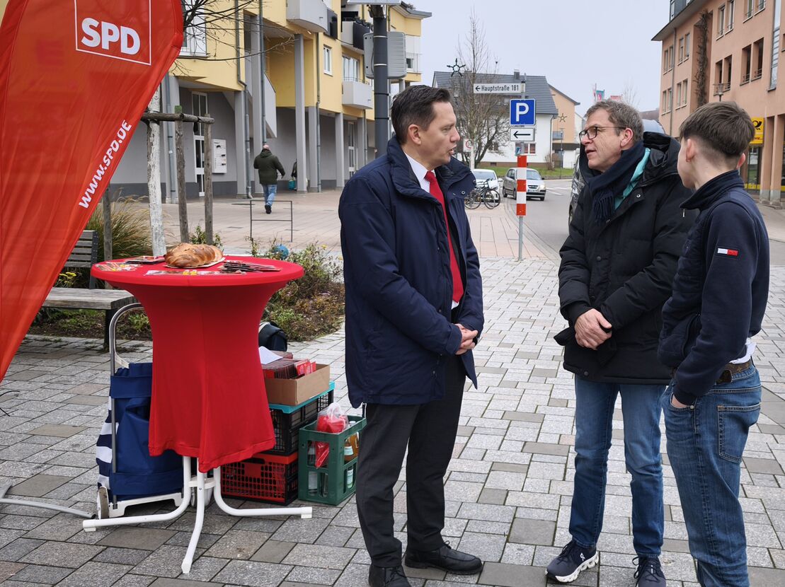 Zur Eröffnung des Weihnachtsmarktes statteten der SPD-Bundestagsabgeordnete Johannes Fechner und die SPD-Landtagswahlkandidatin Martina Fuhrmann Denzlingen einen Besuch ab. Am Kohlerhof verteilten sie süße Weihnachtsgrüße und kamen mit zahlreichen Bürgerinnen und Bürgern ins Gespräch.