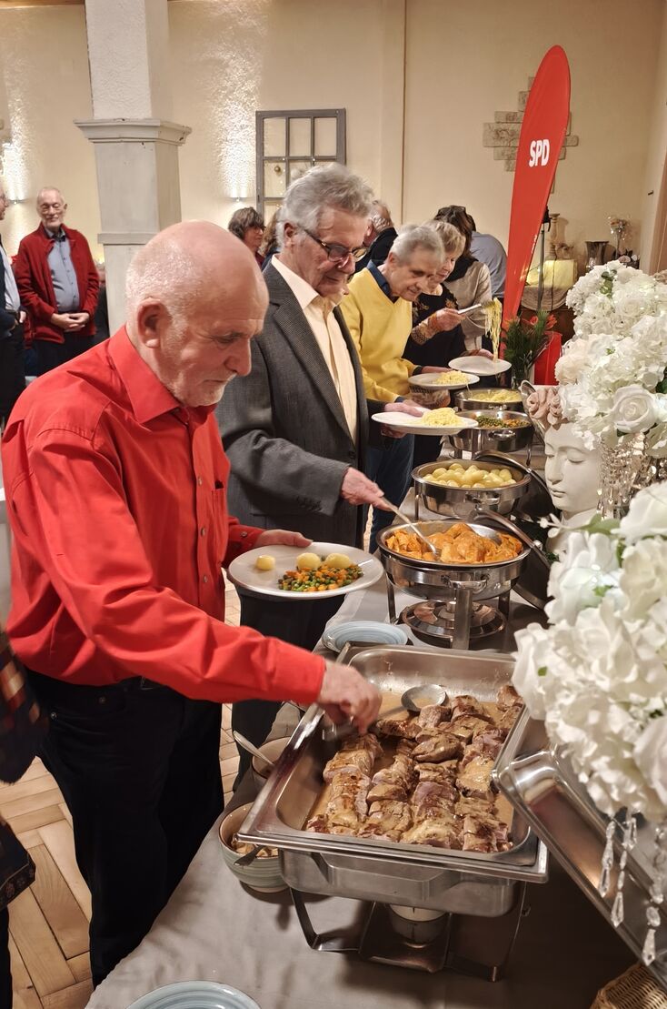 Nach so viel großer und kleiner Politik gingen die Genossinnen und Genossen zum gemütlichen Teil des Abends über, labten sich am von Wirt Lino und seinem Team liebevoll hergerichteten Büffet und freuten sich über den Besuch des Nikolauses, der womöglich zum ersten Mal den Weg in eine Versammlung der Denzlinger SPD gefunden hatte. Karlheinz Schiedel