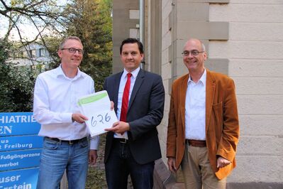 Mehr Personal für die Pflege psychisch kranker Menschen – das ist die zentrale Forderung von ver.di und dem Personalrat des Zentrums für Psychiatrie in Emmendingen (ZfP). Ver.di-Geschäftsführer Rainer Geis und die ZfP-Personalräte Horst Burkhart und Peter Köstel übergaben SPD -Bundestagsabgeordneten Johannes Fechner 626 Unterschriften von Mitarbeiterinnen und Mitarbeitern aus Emmendingen und Calw, die eine bessere personelle Ausstattung fordern. Hintergrund ist das derzeit vom Bundestag beratene Gesetz zur Weiterentwicklung der Versorgung und Vergütung für psychiatrische und psychosomatische Leistungen. Geis und Burkhart lobten, dass das derzeit geltende sogenannte PEPP-Vergütungssystem auf Druck der SPD abgeschafft wird. Gut sei auch, dass „sich die zukünftige Vergütung der Kliniken für ihre Leistungen nicht mehr an bundesweiten Durchschnittswerten, sondern an regionalen und strukturellen Besonderheiten vor Ort“ orientiere. Allerdings fehle eine Nachweispflicht für Krankenhausträger, dass die vorgesehenen höheren Beträge für mehr Personal auch tatsächlich in mehr Personal investiert würden. Auch müsse gesichert sein, dass Tariferhöhungen voll von den Krankenkassen refinanziert werden. Geis und Burkhart machten Fechner deutlich, welch extrem hoher Bürokratieaufwand in der Pflege zwischenzeitlich entstanden ist. „Bis zu 30 % der Arbeitszeit geht für die Dokumentation drauf!“