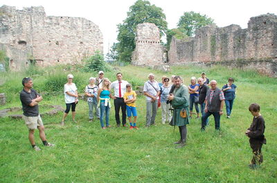SPD-Bundestagsabgeordneter Johannes Fechner besuchte im Rahmen seines Sommerprogramms mit über 20 Interessierten die Hochburg. Axel Brinkmann vom Hochburgverein berichtete über die abwechslungsreiche Geschichte der Burg. „Bis zu 800 Leute lebten hier oben und hielten die Stellung“, so Brinkmann, der sich besonders darüber freute, dass seit neuestem ein Uhu dauerhaft Bewohner der Burg ist. Das Land Baden-Württemberg gibt jedes Jahr einen Zuschuss von 50.000 Euro für die Erhaltung der Ruine. Brinkmann und der Verein wünschen sich nun einen weiteren Zuschuss von 70.000 €, um als neuestes Projekt das Dach über der Pfisterei, der ehemaligen Bäckerei, und dem Küferhof errichten zu können. Dann könnte auch die gut erhaltenen historisch Bäckerei, in der 70.000 Brote pro Jahr gebacken wurden, Besuchern offen stehen. Nebenan im Küferhof lagerten bis zu 800.000 Liter Wein, die teilweise auch als Sold für die Soldaten dienten. Fechner zeigte großen Respekt für die ehrenamtliche Arbeit des Hochburgvereins : „Es ist wirklich großartig, was hier für die Hochburg geleistet wird!“