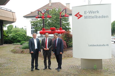 Johannes Fechner tauschte sich bei einem Vor-Ort Besuch beim E-Werk Mittelbaden mit Vorstand Dr. Ulrich Kleine und Prokurist Martin Wenz zum Erneuerbare-Energien-Gesetz (EEG) aus. Das Gesetz verändert das bestehende EEG 2014 in vielen Bereichen, insbesondere im Bereich Ausschreibungen zur Förderung der erneuerbaren Energien sind zahlreiche neue Paragrafen eingefügt worden. Fechner interessierte sich für die Einschätzung der Fachleute vor Ort. „Die Energiewende ist für die Branche ein hochinteressantes Thema und insgesamt natürlich sinnvoll“, sagte Kleine. Im Netzgebiet des E-Werks Mittelbaden wird 92 % des Strombedarfs der Haushaltskunden mit regenerativ produziertem Strom beliefert. Insgesamt 283 Millionen kWh Strom werden regenerativ erzeugt und ins Netz eingespeist. Kleine verwies aber auch auf Probleme, die insbesondere die Windkraft betreffen. „Die Anlagen müssen jetzt sehr effizient und marktwirtschaftlich vertretbar sein – das ist grundsätzlich gut, aber die Ausgangslage in Deutschland ist zu uneinheitlich für ein solches Gesetz!“