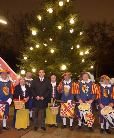 Der Fanfarenzug der Hachberger Herolde umrahmte musikalisch die Übergabe der Weihnachtstanne für die Landesvertretung Baden-Württemberg in Berlin. Die prächtige Tanne stammt aus Lahr und wurde dieses Jahr vom SPD-Bundestagsabgeordneten Johannes Fechner ausgesucht und eigenhändig gefällt. Mit der Feier mit zahlreichen Baden-Württembergern aus Berlin startet jetzt die festliche Illumination des Baums.